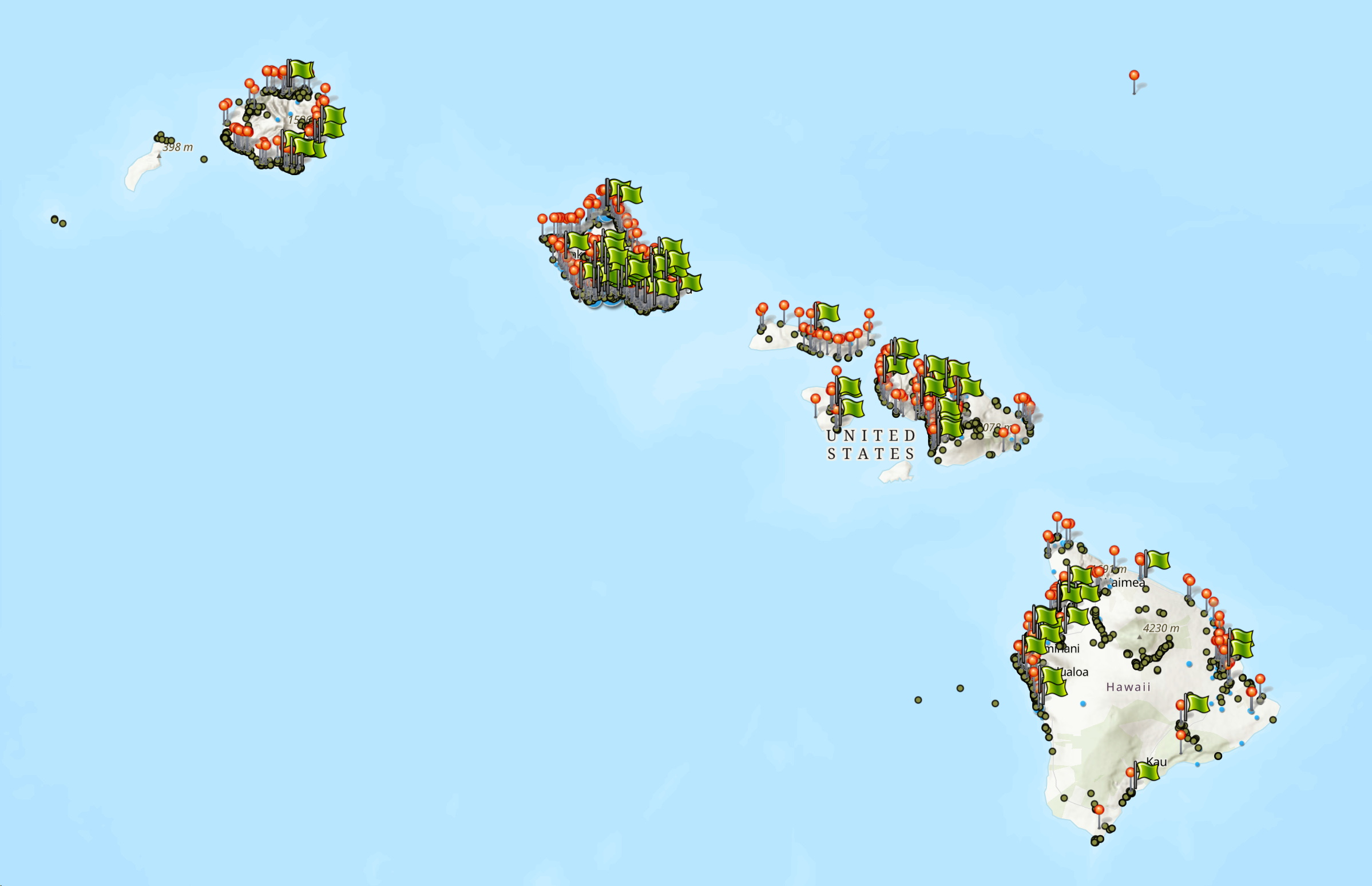 Another happy occasion with Kōlea Count is that Rich Downs, a professional data analyst, as well as Oahu’s manu o Kū expert, is working with our accumulating kōlea facts and figures. By combining eBird observations with Kolea Count numbers, and noting Hawaiʻi’s golf courses (green flags), we’re learning the precise locations of our birds statewide.