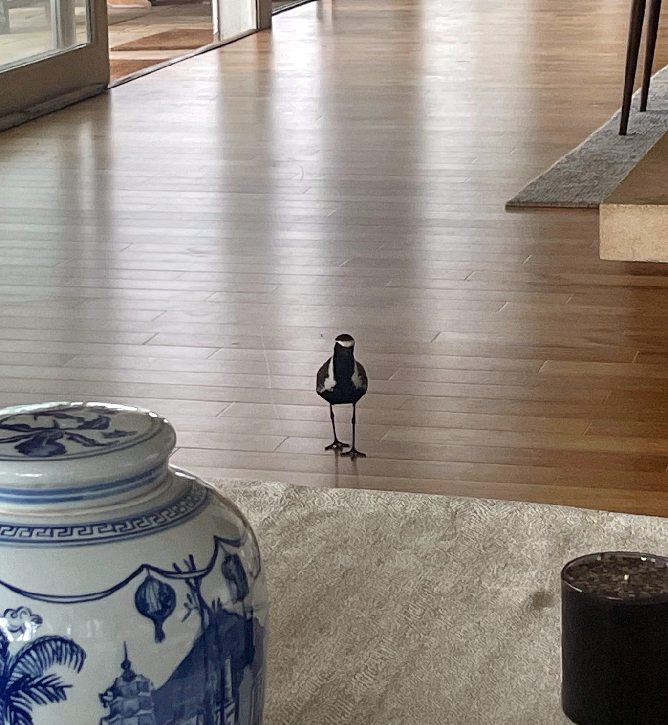 Some birds are more adaptable than others. One lucky Kailua resident has one kōlea, named Ernie, in the front yard, and one in the backyard, named Bert. Ernie is human-shy. Not Bert, though. Bert comes to the lanai first thing in the morning for the mealworms the homeowners offer. Recently, the bird walked through the open door for his snack. Bert has been gone since Tuesday. With this photo, the bird’s host emailed, “I wish I could speak Kolea so I could have wished him Bon Voyage. I miss him already.”