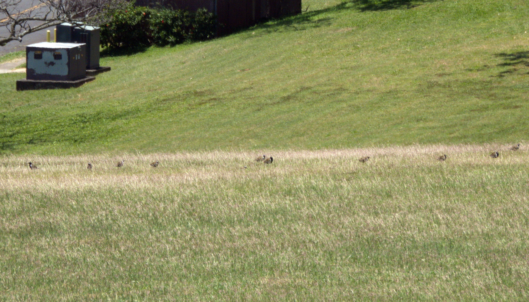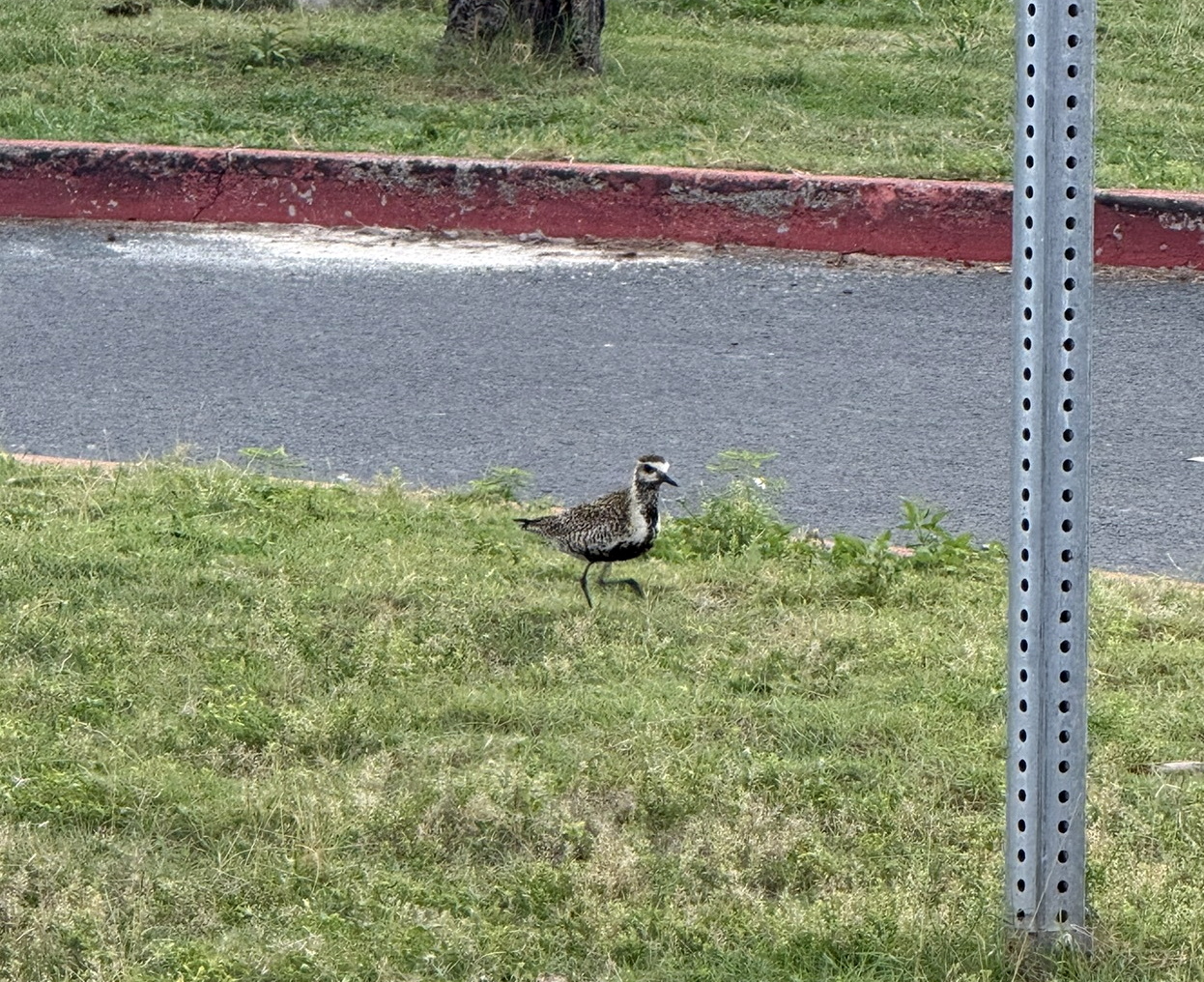 It’s a good question. We know that come April, the birds start gathering in large or small numbers in Hawaiʻi’s fields and grasslands. Over the last few years, we’ve seen groups of 50 or 60 plovers from mid-to-late April forging and resting together in grassy expanses of Ford Island and around Tripler Army Medical Center.